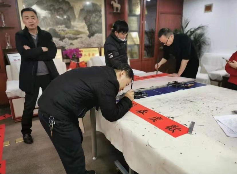 春節(jié)臨近,為營造歡樂、喜慶的新春氛圍,弘揚(yáng)中華傳統(tǒng)民俗文化。1月28日下午,公司特邀公路局書法愛好者李秀文書記和燕耿強(qiáng)主任前來公司機(jī)關(guān)為職工現(xiàn)場題寫春聯(lián)福字。